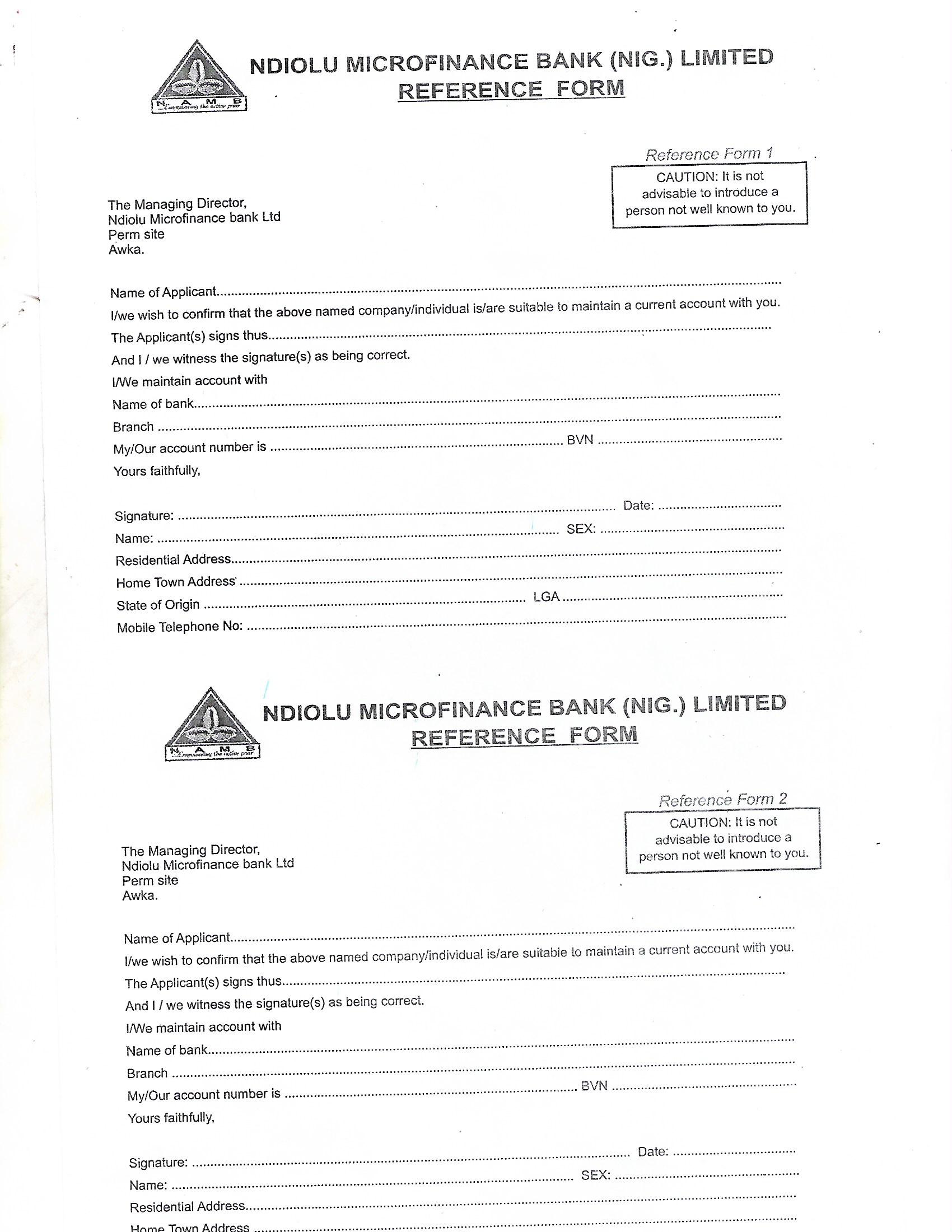 The bank reference form shall be given to Two current account holders from any bank to fill.